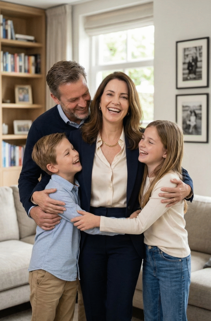 Parei de cobrar e comecei a aplicar esses princípios científicos no meu próprio casamento. O resultado foi quase imediato e transformador. Meu marido “acordou”, a paixão retornou, e nós reconstruímos a família feliz e unida que você vê na foto.